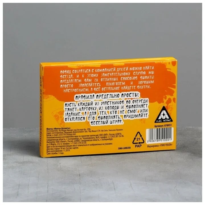 Купить игра для компании "фанты буханты" 20 карт от 100 руб. с доставкой до пункта выдачи в Сольвычегодске. Интернет магазин ДекаМаркет. Оплата при получении.